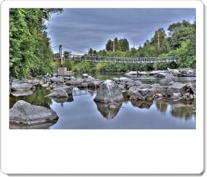 Our most celebrated artifact is the museum itself. This beautiful stone mill was built in 1855 by fur trader and Hudson’s Bay Company agent, John Lorne McDougall. Used originally as a grist mill, the building was renovated and reopened as a museum in 1969. Situated in picturesque O’Brien Park the mill cradles the second chute of the Bonnechere River and overlooks the town’s historic Swinging Bridge.