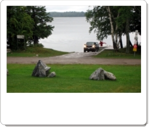 A quick and easy launching point. It is a very direct and fast drive from all points. There are no services on-site (bait, fuel, etc), but if you have your own boat, trailer and want to launch and park for a small fee, this is your best choice. As well you can take a moment and visit the historic Waba cottages and gardens, and there is a modern bathroom facility (in the old general store building on the side during museum hours). If you require full services, you can launch from here and then stop by one of the resorts or marina (see the maps for directions), or simply launch from the resort or marina instead (fees apply).