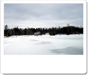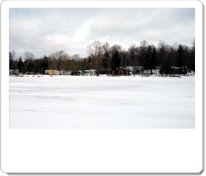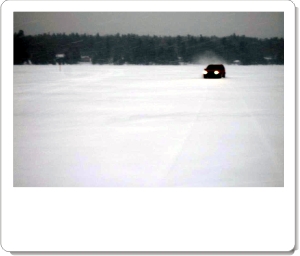 There is a well marked naturally forming ice bridge route from Cedar Cove Resort to the White Lake Marina. It is 12Km, and takes about 20 min. traveling between 30 - 50 Km/hr.