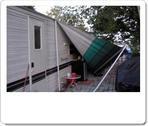 - angle the awning (and test with a hose) so that rain water easy rolls off and never accumulates, otherwise, after every severe storm, it seems there is always a few 'awning casualties' as shown in this picture